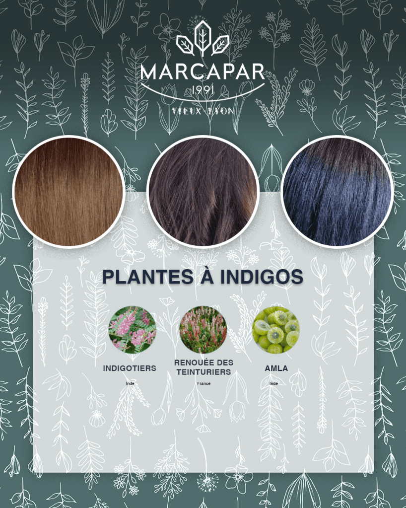 Les plantes indigos sont des plantes aux teintes bleues. La plus connue d’entre elles, qui lui donne son nom, est l’indigotier. Il en existe plus de 480 espèces. D’autres plantes permettent également d’obtenir des teintes bleutées comme l’Amla ou le renouée des teinturiers par exemple.